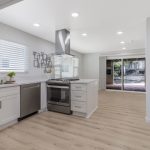 The brand-new kitchen is a showstopper, with quartz countertops and a breakfast bar, soft-close cabinetry, an island canopy hood vent, new stove, and a separate prep area with additional storage—perfect for culinary enthusiasts. The kitchen flows seamlessly into the open-concept family room, offering easy access to a large, covered patio with a privacy wall—ideal for gatherings or quiet mornings with coffee.